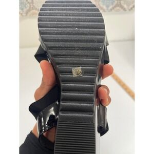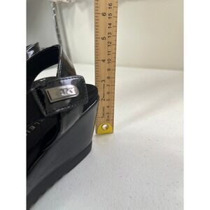 AK Anne Klein Black Patent Crisscross Wedge Sandals Women's Size 11M