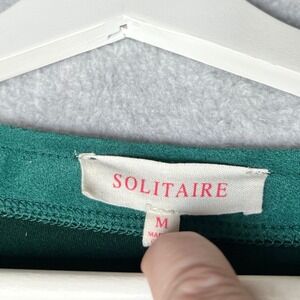 Teal faux suede open front long sleeve duster cardigan from Solitaire. Two front patch pockets offer functional detail. The open neckline creates a flattering silhouette.