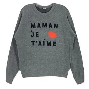 NWOT CLARE V CV+EMC Sweatshirt S Oversized Graphic RED-LIPS”Maman Je T’aime”Grey