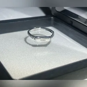 Experience the allure of Yves Saint Laurent with this stunning silver ring, a perfect blend of modern design and timeless elegance. Its sleek and polished finish makes it a versatile accessory for any occasion, adding a touch of sophistication to your look. Crafted with meticulous attention to detail, this ring is a testament to luxury and style.