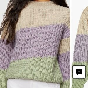 Chic knit sweater with a blend of sherbet cream, lilac purple, and mint green. Perfect for casual wear.