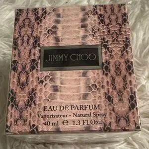 Indulge in the elegance of Jimmy Choo Eau de Parfum. Features a chic pink and brown snake print design. Perfect for any occasion.