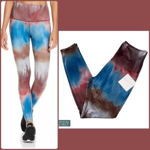Beyond Yoga Lux High Rise Tie-Dye Leggings Blue Red Brown 4-Way Stretch Pants