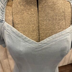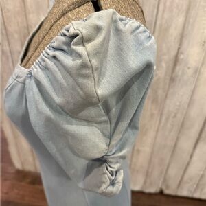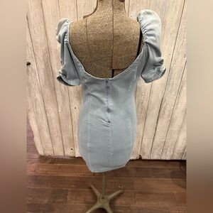 Chic Light Blue Denim Mini Dress with Puff Sleeves