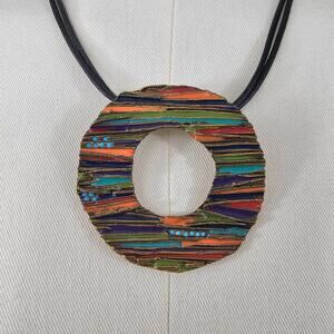 Chicos Multicolor Enamel Circle Corded Pendant Necklace