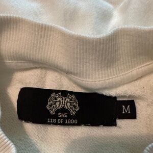 Worn DarcSport Wolves White crewneck sweatshirt with Wolves Club design and blue stars. Size medium in good condition with fade white color. Shell is 100% cotton Rib is 95% cotton 5% elastane. Chest 25in length 24in