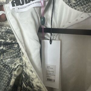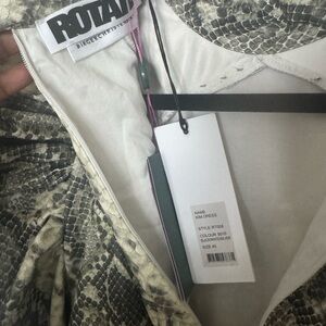 Introducing this Kim Dress by ROTATE Birger Christensen. This multi-coloured dress has a python print with voluminous shoulders. It has a lined inner and back lined buttons closure. The dress has a zip on the backside and fits your body perfectly flaunting your perfect figure. Adorn this short length dress with your favourite accessory and let the world adore you.