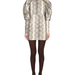 ROTATE BIRGER CHRISTENSEN "KIM" DRESS WITH PYTHON PRINT AND VOLUMINOUS SHOULDERS