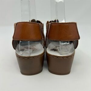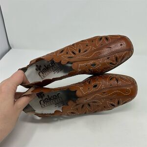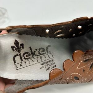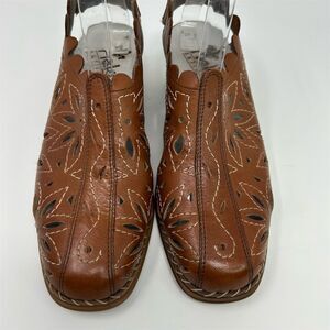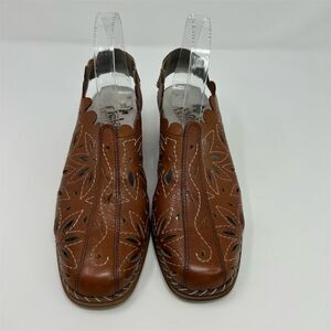 Rieker Brown Leather Slingback Sandals Size 39 (US 8) Cutout Floral Design