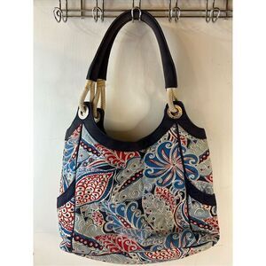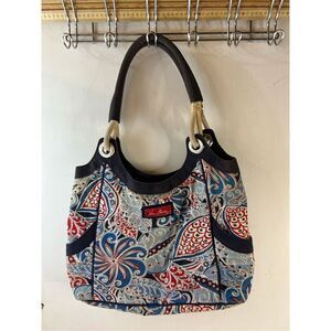 Vera Bradley shoulder bag red blue 14x15 retired Anchor Tote