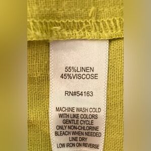 Linen Blend Size Large Vibrant Green/Yellow Open Front Blazer with notched collar and side pockets. Good used condition with normal wear and no callouts.