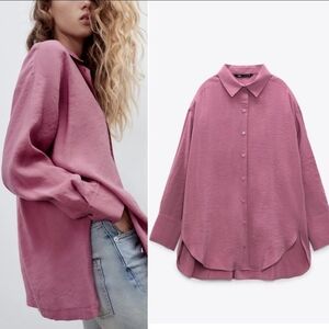 ZARA Lilac/Mauve Oversized Button-Down Shirt Size XS