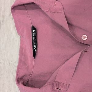 Chic and versatile mauve/lilac button-down shirt from Zara. Ideal for casual or formal wear. Soft fabric with a relaxed fit.