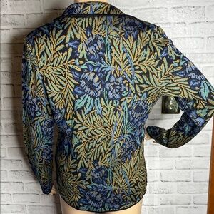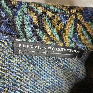 Pre owned Peruvian connection Pima cotton floral print cardigan sweater, size small. Collared, button front.