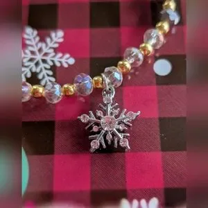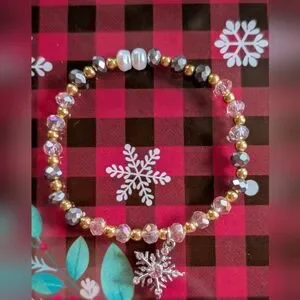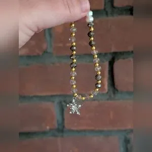 Elegant bracelet featuring gold and crystal beads with a snowflake charm. Perfect for adding a touch of sparkle to your festive outfit. Wear all Winter long ❄️