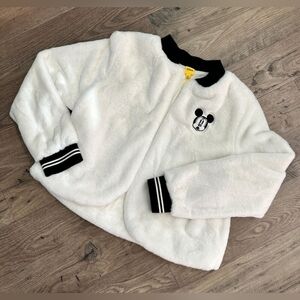 Disney Mickey Mouse 90th Anniversary Faux Fur White Bomber Jacket XL