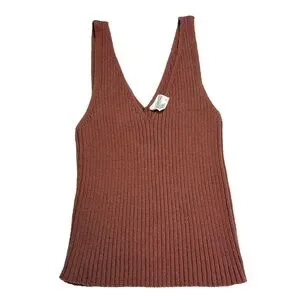 Basic Terracotta Essentials By Full Tilt Rib-Knit V Neck Tank