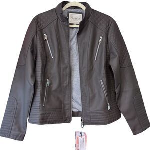 Charcoal Gray Faux Leather Zip Up Mock Neck Jacket XL NWT - Snobbish