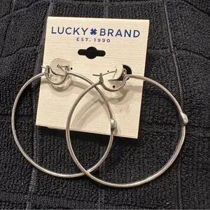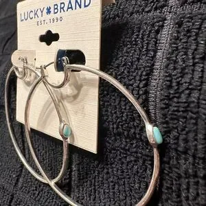 NWT: Lucky Brand silver hoop earrings with turquoise detail. Ideal for any occasion.