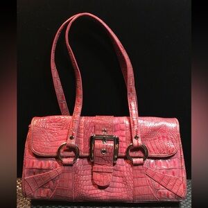 Isabella Fiore Pink Croc-Embossed Shoulder Bag