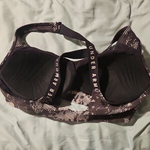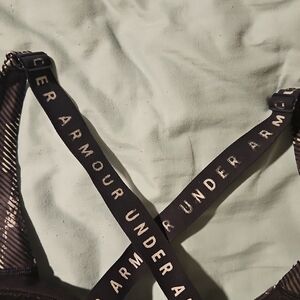 Experience comfort and support with this Under Armour sports bra. Features a stylish cross-back design in black and gray.