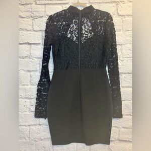 Black Windsor Dress with Lace Sleeves & Back with Collar