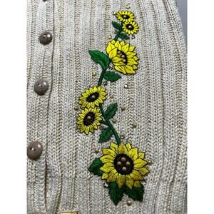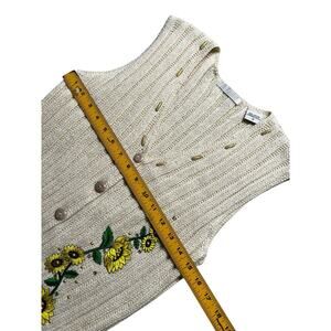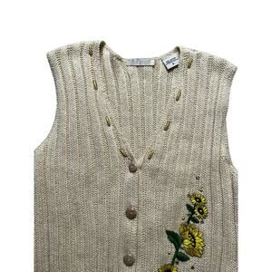 Vintage Mesh Knit SunFlower Embroidered Button Sweater Vest Women Sz Small USA