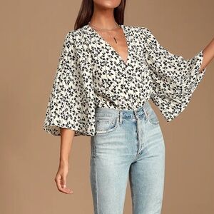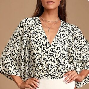 Meet For Drinks Cream Print Pleated Sleeve Bodysuit from Lulus NWT Size Medium
