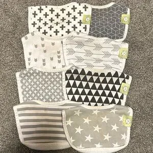 “KeaBabies” Stylish Gray and White Baby Bib Set of 8
