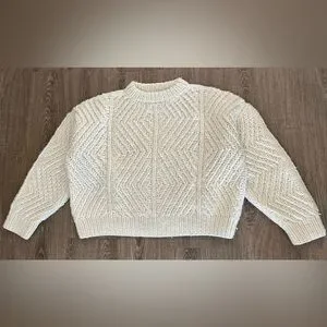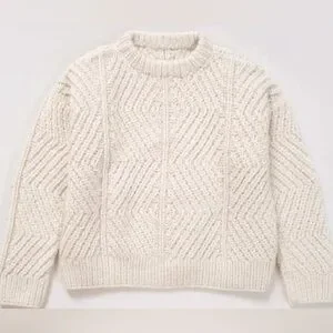 The Micaela Greg Bevel Sweater in Cream is a chunky, cozy sweater crafted from soft merino wool. Its thick, textured knit offers warmth and comfort, while the beveled design adds a modern touch. The neutral cream shade makes it easy to style, perfect for cold-weather layering or as a statement piece.