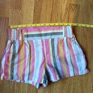 Roxy womens colorful striped shorts pockets pink green beachy linen cotton S