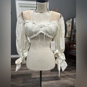 Rare NWT For Love And Lemons Creamsicle Crop Top Linen Embroidered Medium Sheer