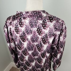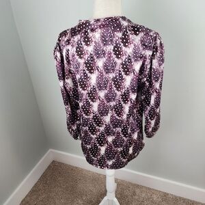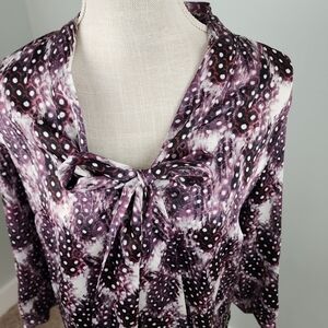 Worthington Women’s Purple Polka Dot Tie Neck Long Sleeve Blouse Top Size Large