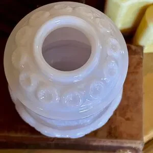 his gorgeous Moon & Star fairy lamp is crafted in a soft Tuscan Pink, giving the classic pattern a warm, elegant glow. Originally designed by L.E. Smith Glass Company and later reproduced using the same molds by Weishar Glass, this piece carries the same beloved detail and charm as the vintage originals. Made in the USA, it’s a beautiful collectible for lovers of patterned glass and fairy lamps.