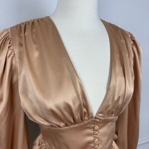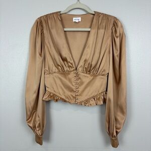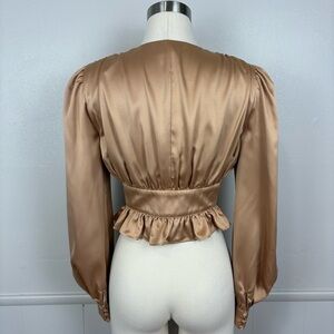 Song of Style Marla Champagne Gold Blouse Corset Waist Crop Size S Satin Ruffle