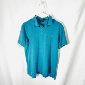 Ralph Lauren Polo Shirt Cotton Piqué Custom Fit Teal Blue Preppy Size L