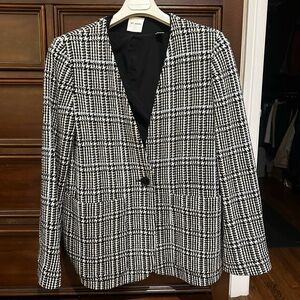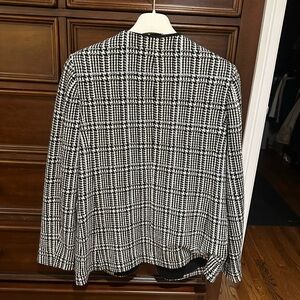 Sophisticated checkered blazer by St. John. Ideal for professional and casual wear. Classic design with a modern touch. UK size 10 is a size 6.
