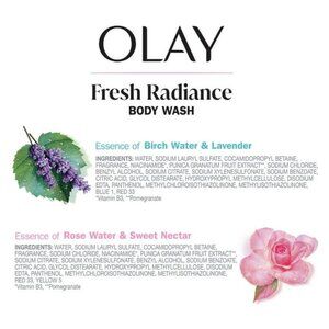 Reveal beautiful, healthy-looking skin you can see and feel with Olay Fresh Radiance Body Wash. Formulated with Olay’s Vitamin B3 Complex to leave you feeling refreshed. This pack offers two distinct scents: Rose Water & Sweet Nectar and Birch Water & Lavender. Switch up scents daily for a fragrantly delightful skin experience. These body washes transform your shower into a spa-like oasis. They leave your skin moisturized, clean, and fresh, boosting hydration better than regular soap. Each craveable scent wraps your skin in fragrance, awakening your senses. The choice of uplifting experience is all yours. Simply lather with a puff and rinse.