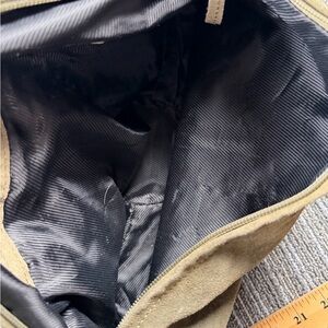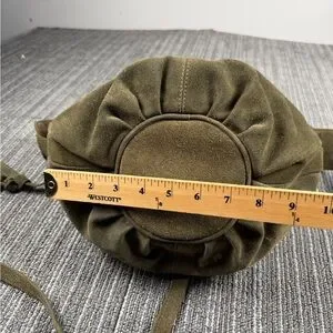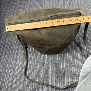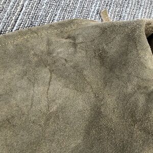 Upgrade your wardrobe with this chic olive suede shoulder bag. Perfect for any occasion, combining elegance and practicality.