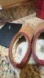 Comfortable UGG slippers in brown suede. Features red accents for a stylish touch.