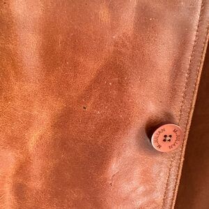 Gorgeous brown leather jacket in excellent pre-loved condition. Light, normal wear on the arms (very minimal). Tag says small, but the fit is closer to a medium