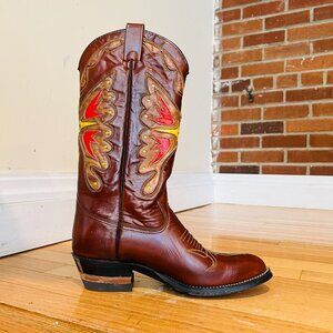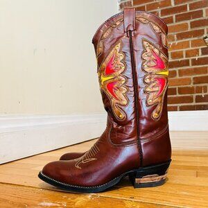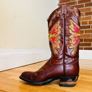 Texas Brand Butterfly Cowboy Boots Style M92 Cognac Men’s Size 8 D Vintage