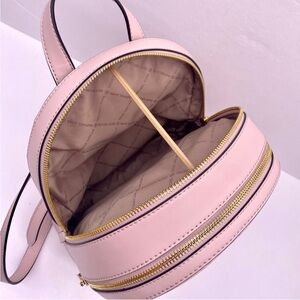 Elegant Michael Kors backpack in blush pink. Features gold-tone zippers and logo. Perfect for adding Stylish and practical for daily use.