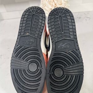 Classic Nike Air Jordan 1 mid. The color is a coral/orange and white. Fits a women’s 7.5 but it’s a 6 youth. Only worn a few times. Marks are shown in photos. Very easy to clean. Does not come with a box