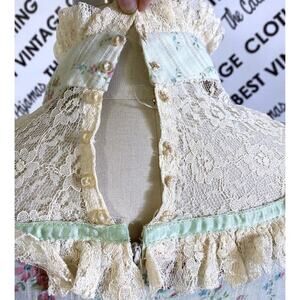 VTG Floral Dress Cottagecore Prairie Romantic Green Mini Print Victorian 70s