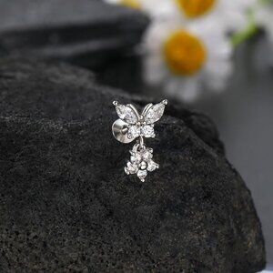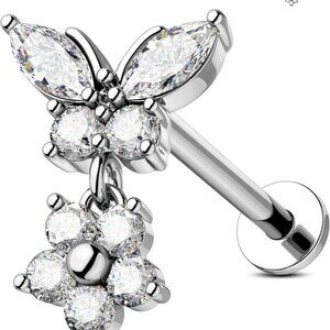 Sterling Steel Flat Back Earrings 16g Butterfly Flower Dangle Jewelry for Women