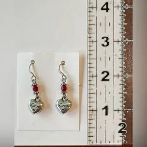 Brighton Silver Heart Earrings with Red Beads