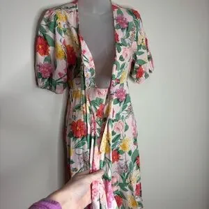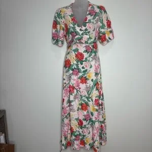 OLD NAVY Fit & Flare Linen-Blend Maxi Dress Floral Boho Coastal Small pink green