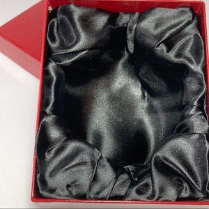 This beautiful heart decor has a green mirror finish and a green glitter bow with a gold cord hanger. Comes in a custom red gift box with satin compartment inside to cushion the ornament. Perfect for that special person that has captured your heart! Meas approx 3-1/2” w x 4” h x 2” d. Drop = 8” overall with hanger. Condition: New in box. Puffed heart ornament green new in box. Smoke free and pet free environment.