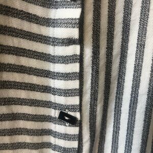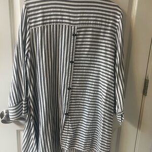Chic top with bold black and white stripes. Soft fabric for comfort. Great top! Cool rectangle buttons. So cute with leggings!